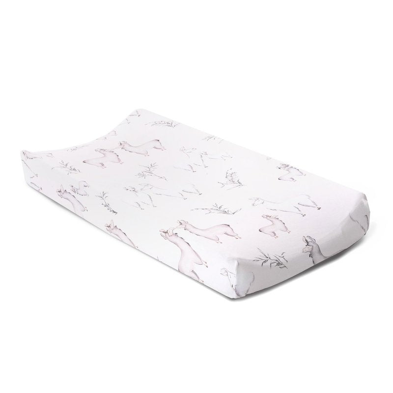 The Oilo Llama Changing Pad Cover fits changing pads up to 16" wide x 32" long