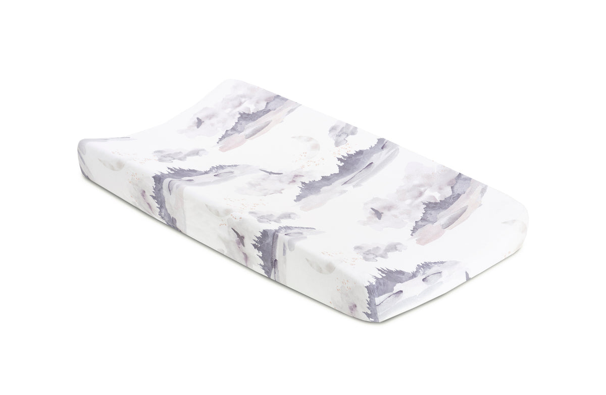 Keep your diaper changing station sanitary and chic with the Oilo Studio Misty Mountain Jersey Changing Pad Cover. Covers are 16 inches wide and measure 32 inches in length.