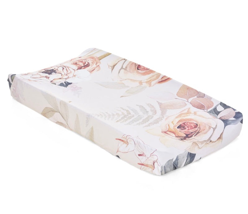 The Oilo Vintage Bloom Changing Pad Cover goes great with the Vintage Bloom Crib Shseet.
