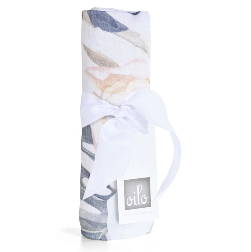 The Oilo Vintage Bloom Swaddle Blanket is crafted in lightweight and breathable cotton muslin, ideal for swaddling, nursing, cuddling and more.