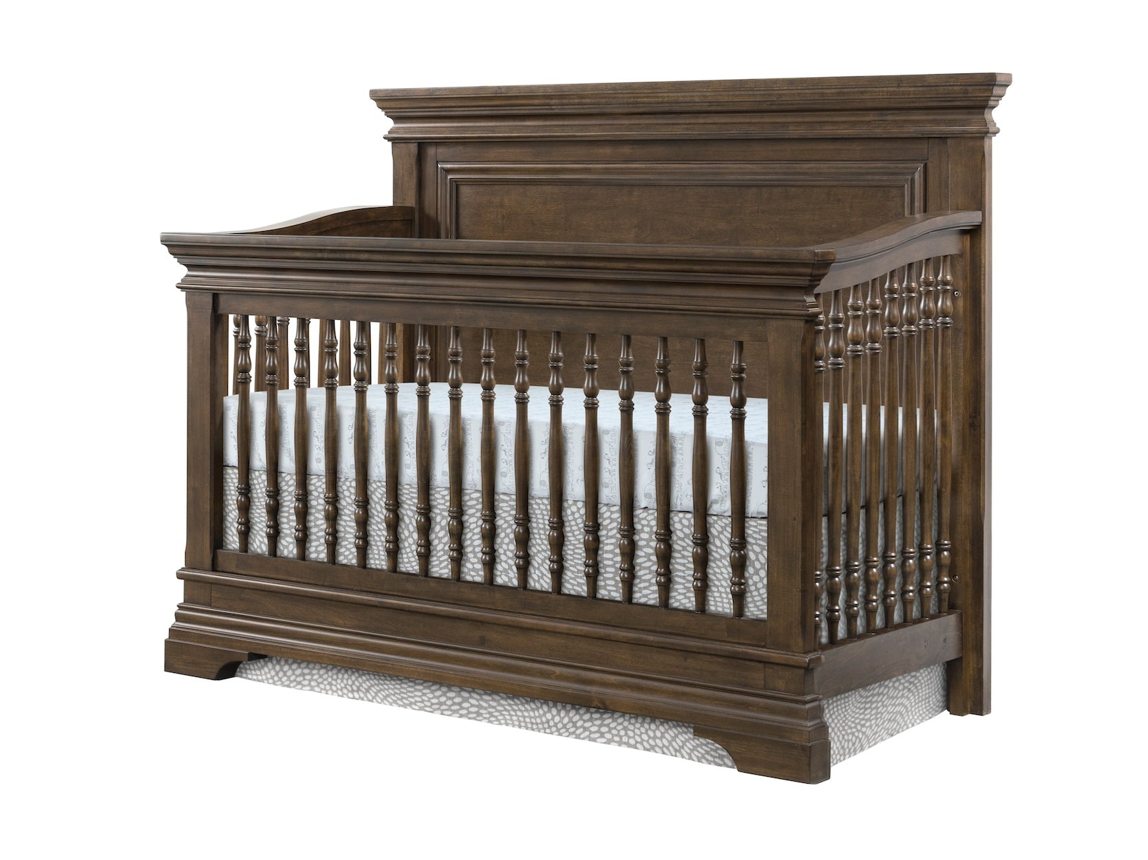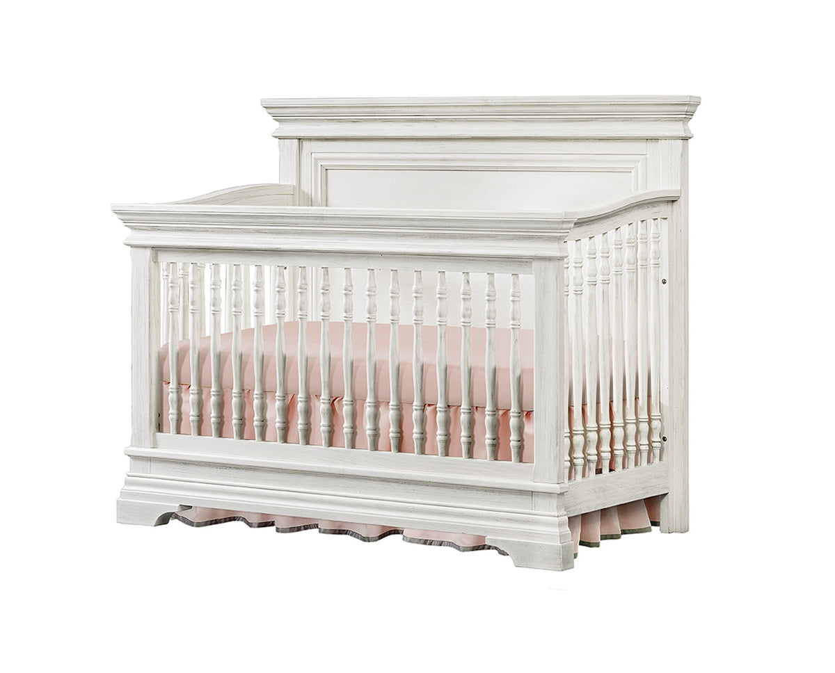 The Westwood Design Olivia Flat Top Convertible Crib's vintage styling creates an elegant yet youthful look for your child’s room. Intricate spindle and sturdy molding details give a timeless look throughout each piece.