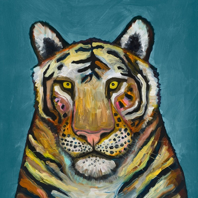 The Oopsy Daisy Tiger On Cerulean Canvas Wall Art is a great piece for your child's room.