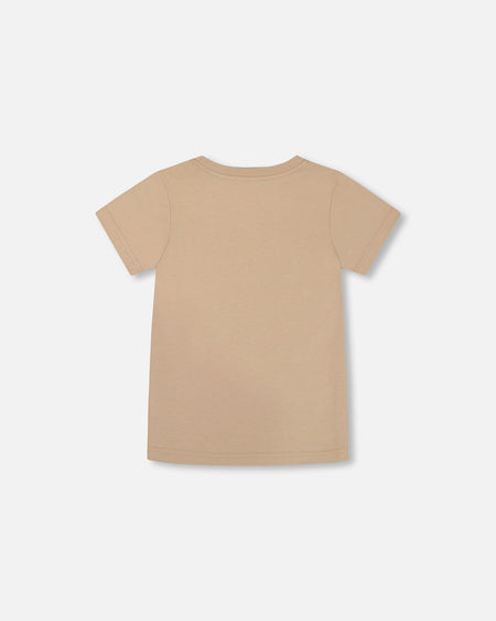 DEUX PAR DEUX ORGANIC COTTON GRAPHIC TEE BLACK PANDA ON BEIGE BACKGROUND