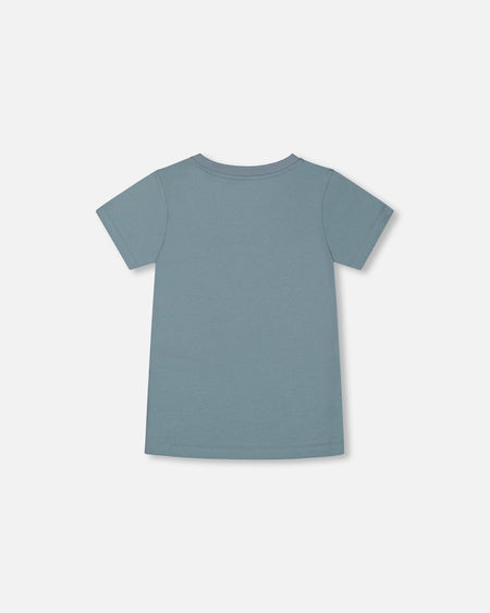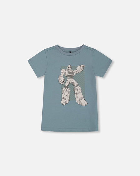 DEUX PAR DEUX ORGANIC COTTON GRAPHIC TEE GRAYISH TEAL AND ROBOT