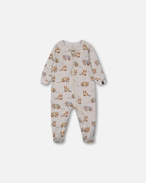 DEUX PAR DEUX ORGANIC COTTON ONE PIECE PAJAMA BEIGE MIX PRINTED RACOONS