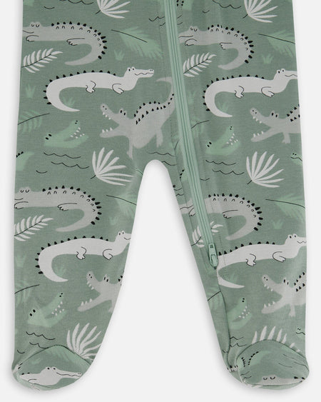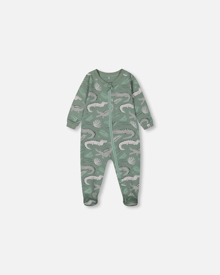 DEUX PAR DEUX ORGANIC COTTON ONE-PIECE PAJAMA LIGHT SAGE AND GRAY CROCODILE