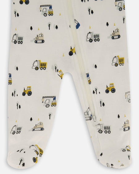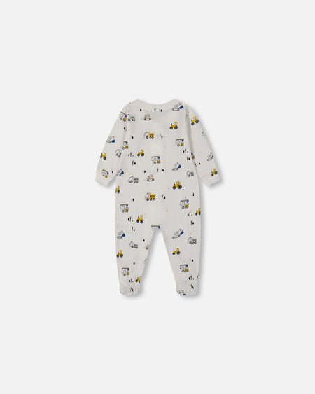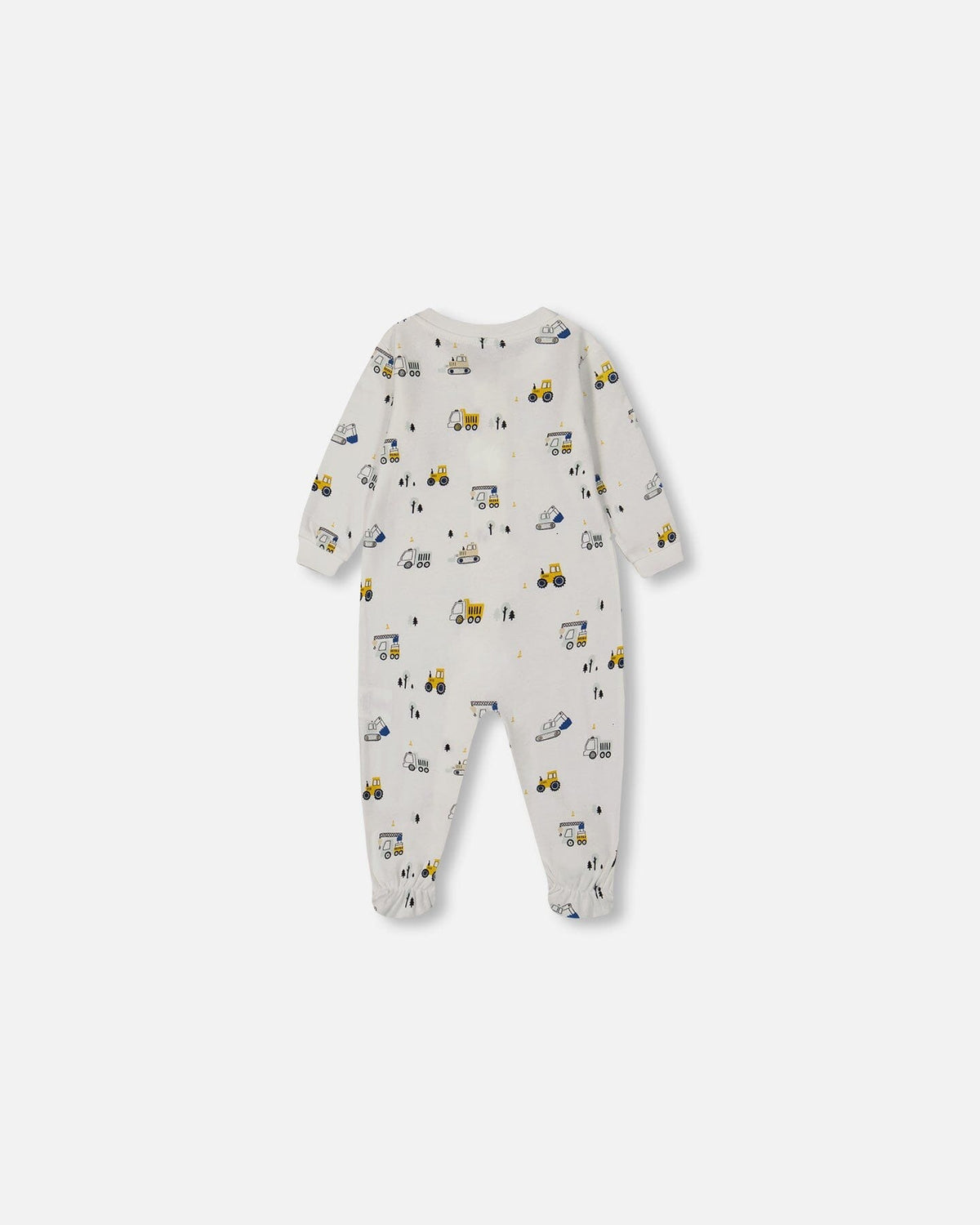 DEUX PAR DEUX ORGANIC COTTON ONE-PIECE PAJAMA OFF-WHITE AND MULTI TRUCK