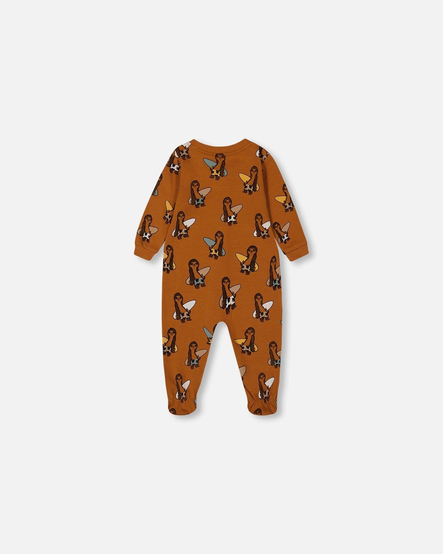 DEUX PAR DEUX ORGANIC COTTON ONE-PIECE PAJAMA SLOTHS ON TAN BACKGROUND