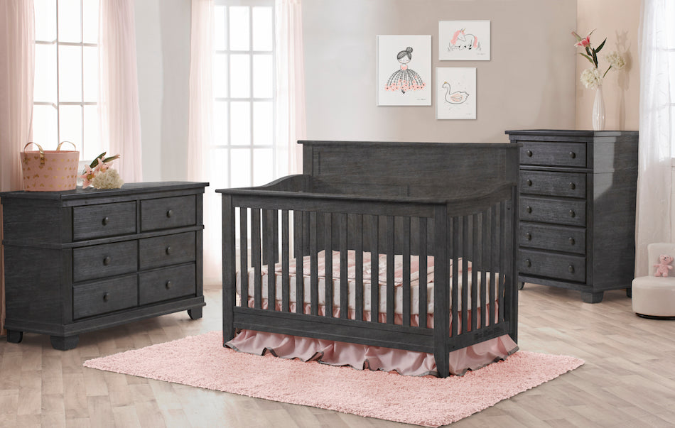 Set includes Potenza Crib, Double Dresser & Chest in Distressed Granite