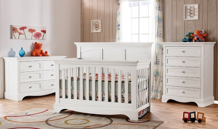 The Pali Ragusa Forever Crib and Dressers, Vintage White is a great set to start your new nursery with.
