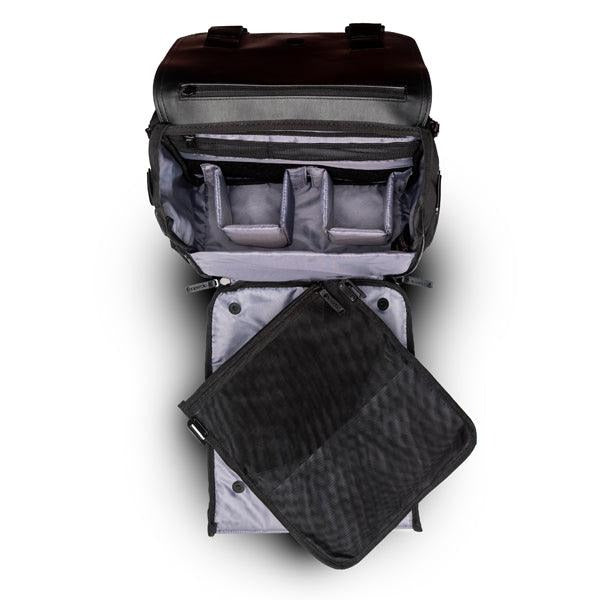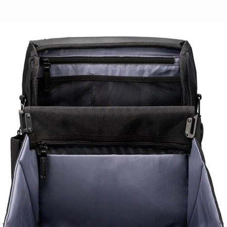 • Our signature slide-and-secure hardware makes navigating the bag quick