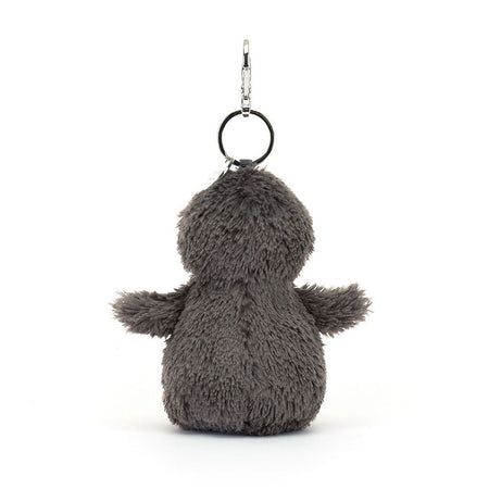 Tousled and playful, the Peanut Penguin Bag Charm brings joy wherever it waddles! This blue-grey penguin has a soft vanilla tummy, orange suedette beak and feet, embroidered eyes and waggly fins. With a Jellycat tag and silver claw clip, this mini pal stands out in a huddle!