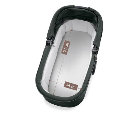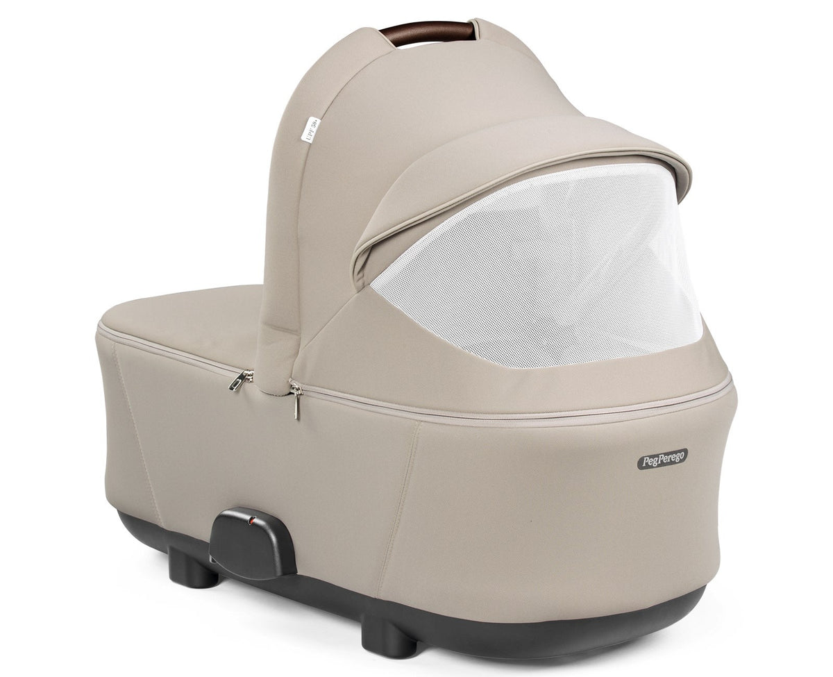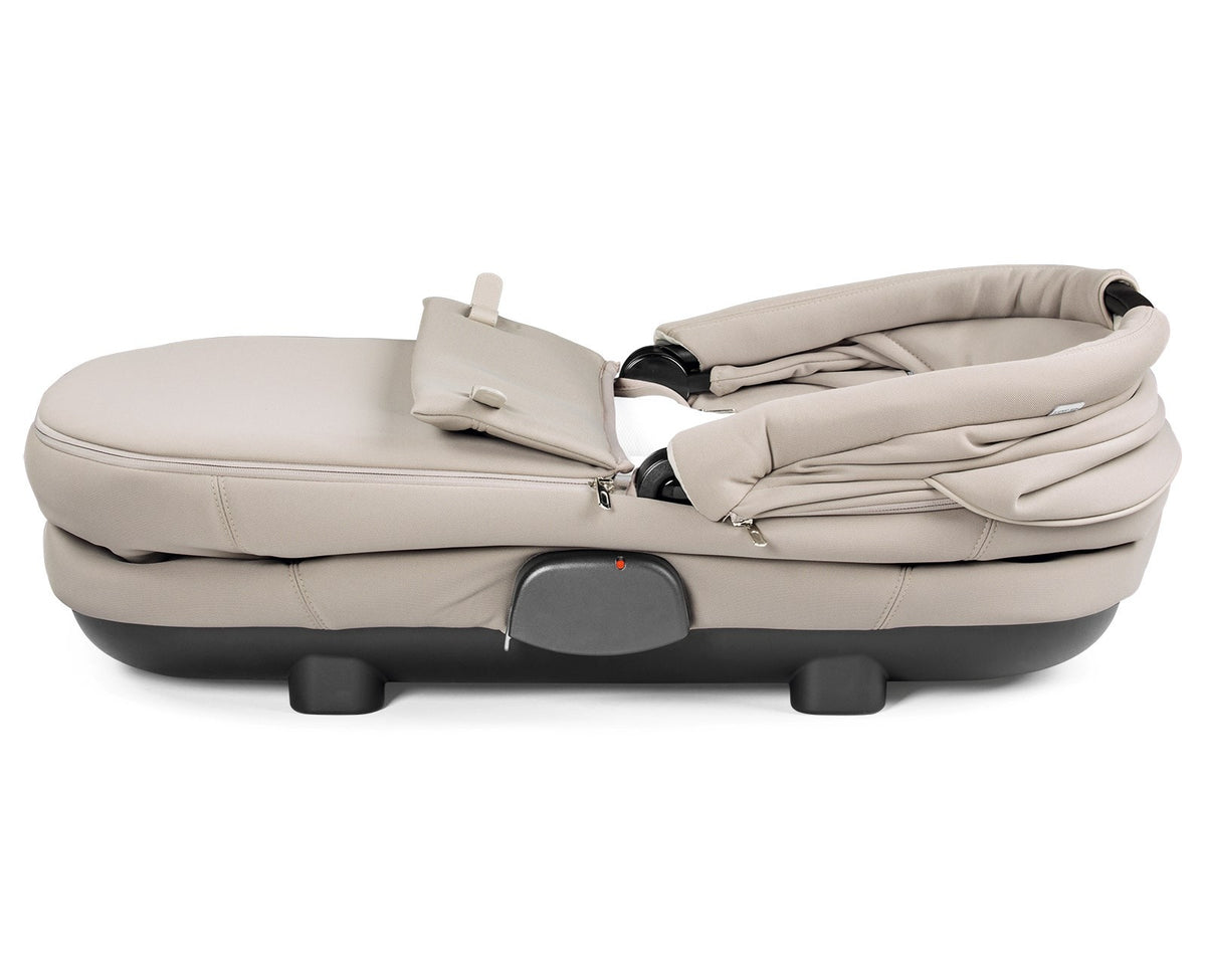 The Peg Perego Culla Flex Bassinet + Stand for Vivace / Veloce is a light, compact, space-saving bassinet. Includes Stand By Me. It folds in one simple movement to be stored away and carried with ease, even in the trunk of the car. The mattress and internal lining in the innovative, breathable Fresco Jersey fabric are like a special cuddle.