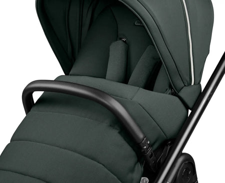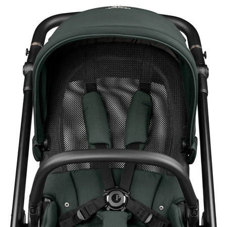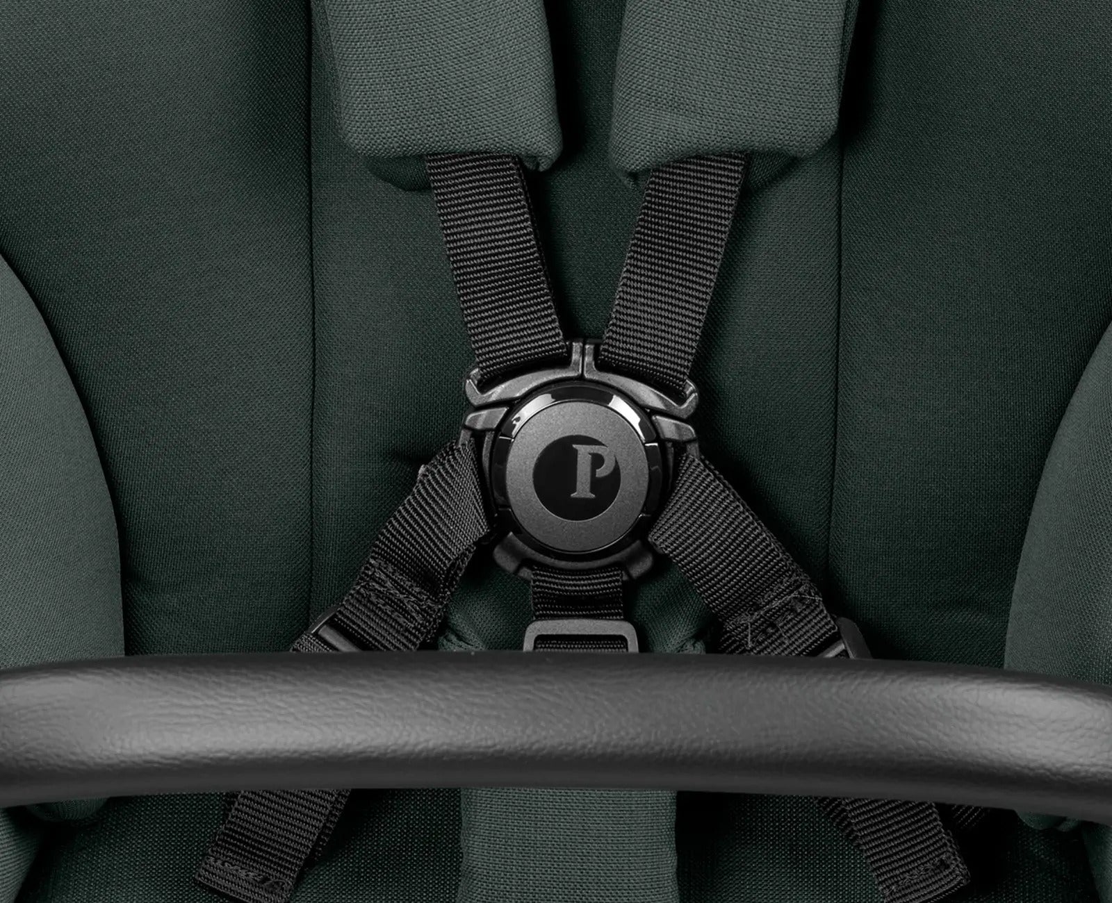 • Comfort and functionality are guaranteed by a roomy seat, a 5-point harness, and an eco-leather front bar that opens with ease.