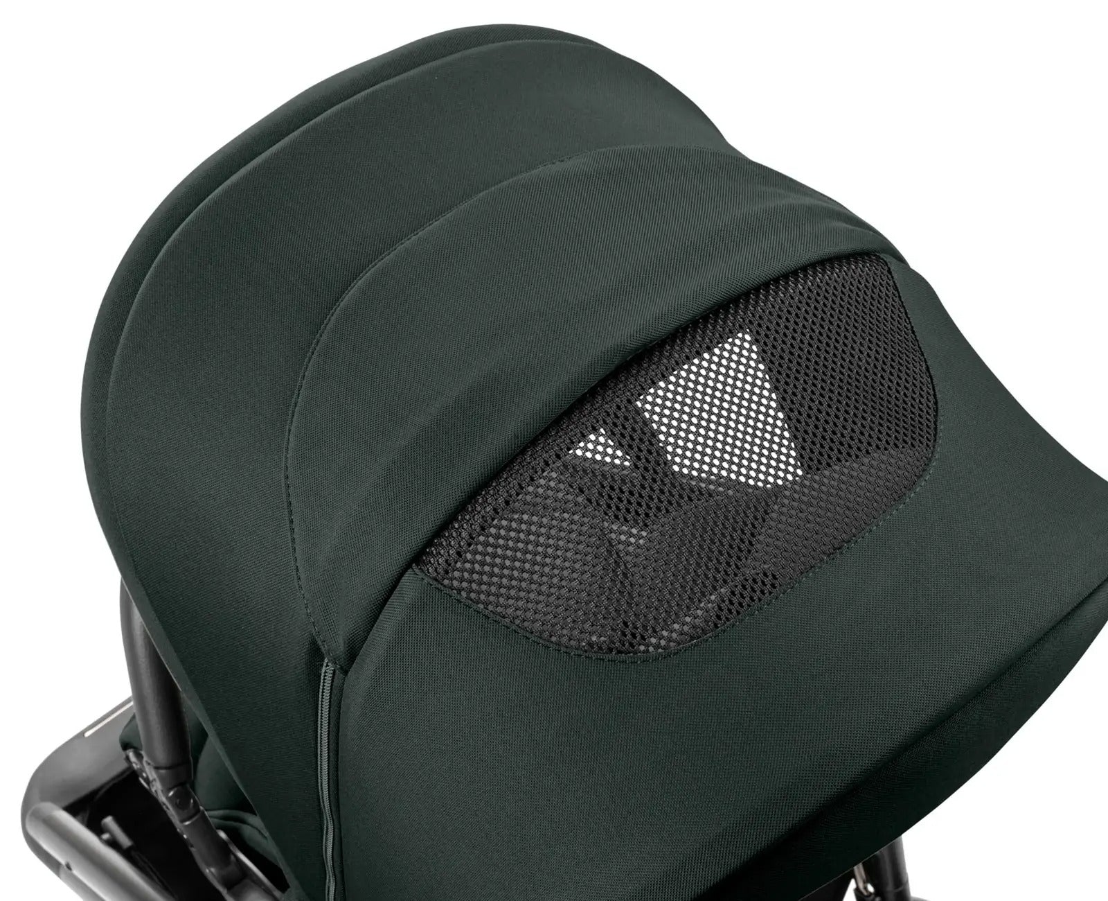 • Extendable Pagoda Hood (UPF 50+) - The extendable hood with a peek-a-boo window protects the baby from the elements.