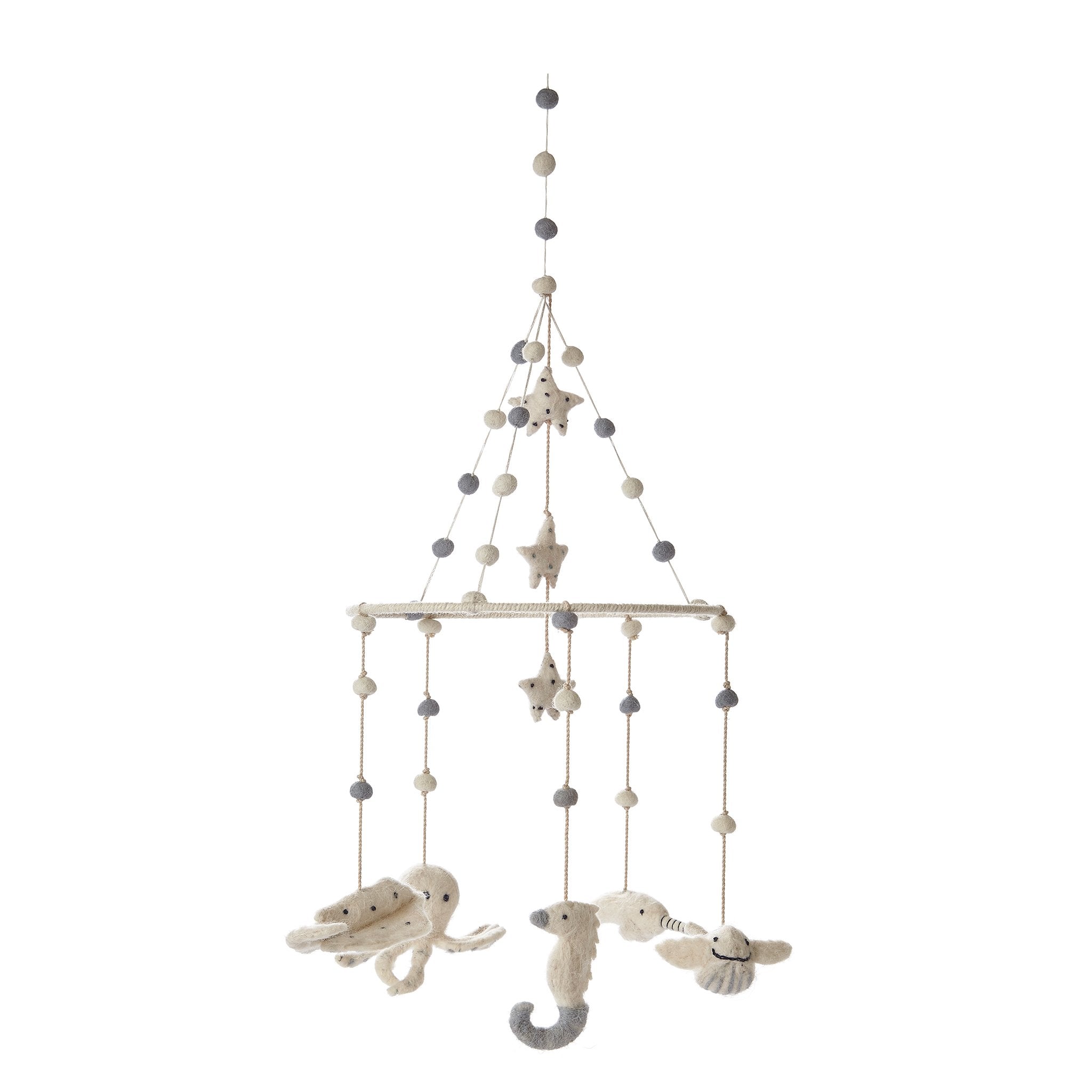 With the Pehr Designs Life Aquatic Mobile, our fan-favorite collection, Life Aquatic has expanded to include a Life Aquatic Mobile! Now all your favorite deep see friends have come to life, floating above your crib or changing table. Made from 100% wool felt.