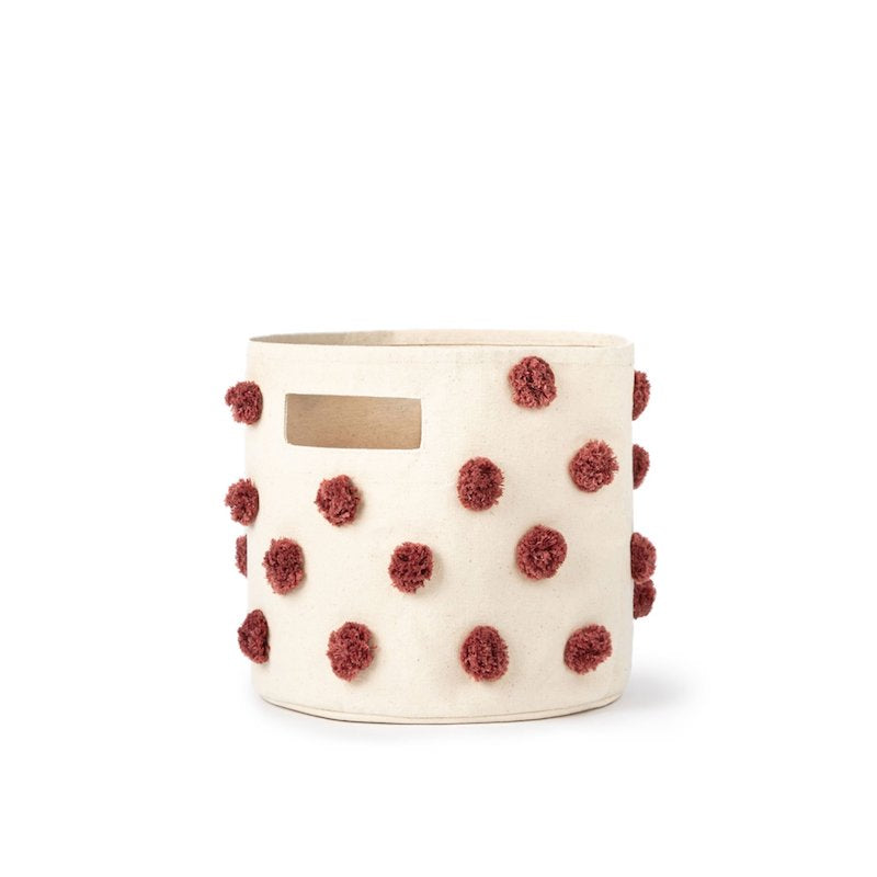 Declutter and update your decor with this durable cotton-canvas Petit Pehr Clay Pom Pom Pint that is perfect for diapers, creams and other small stuff! With each Pom Pom sewn by hand, it will add a pop of playfulness to any room.
