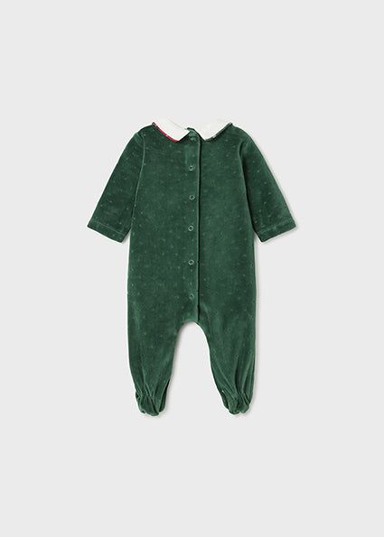 The Mayoral Pine Velour Footie is the perfect fall outfit for your little one.