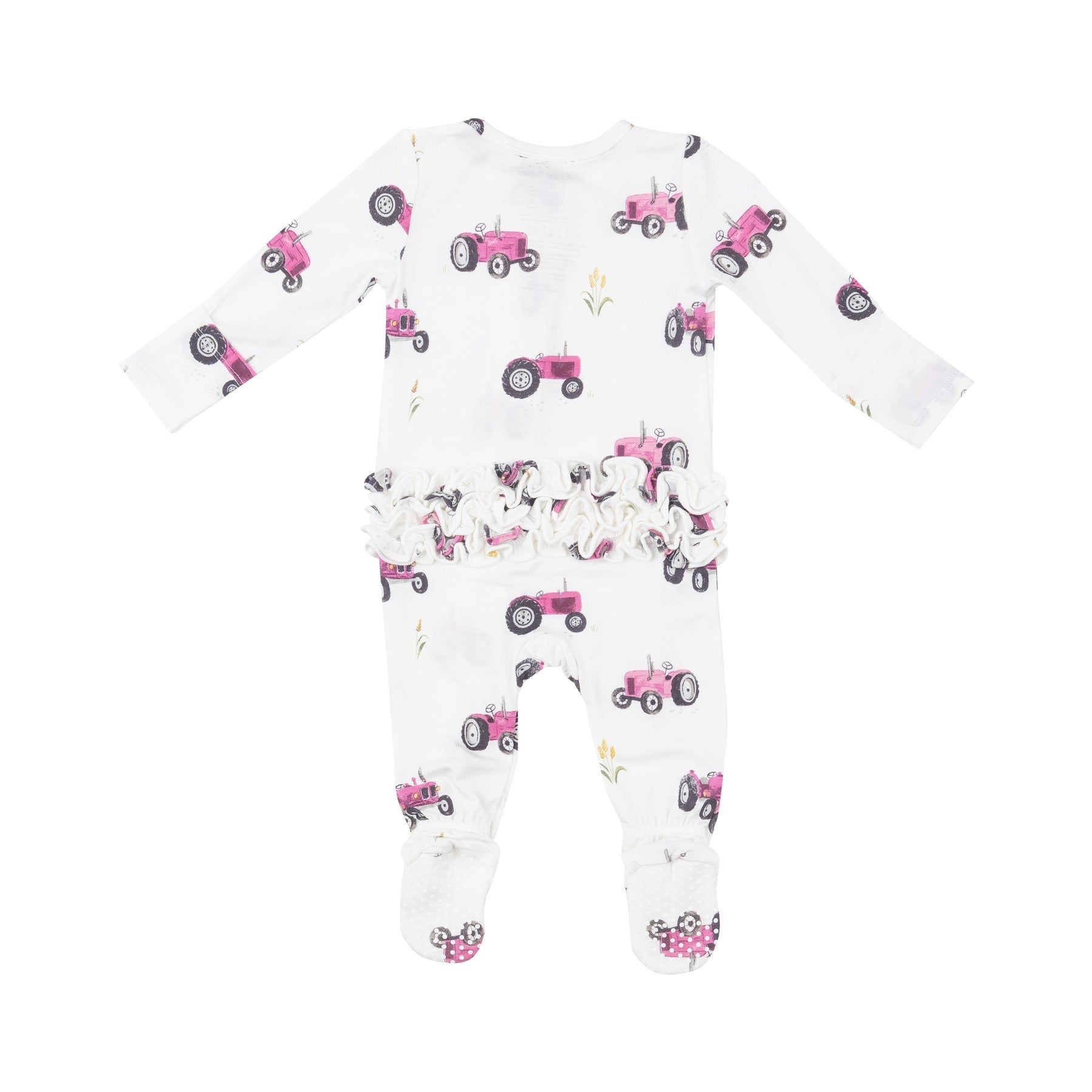 ANGEL DEAR PINK TRACTORS 2 WAY RUFFLE ZIPPER FOOTIE