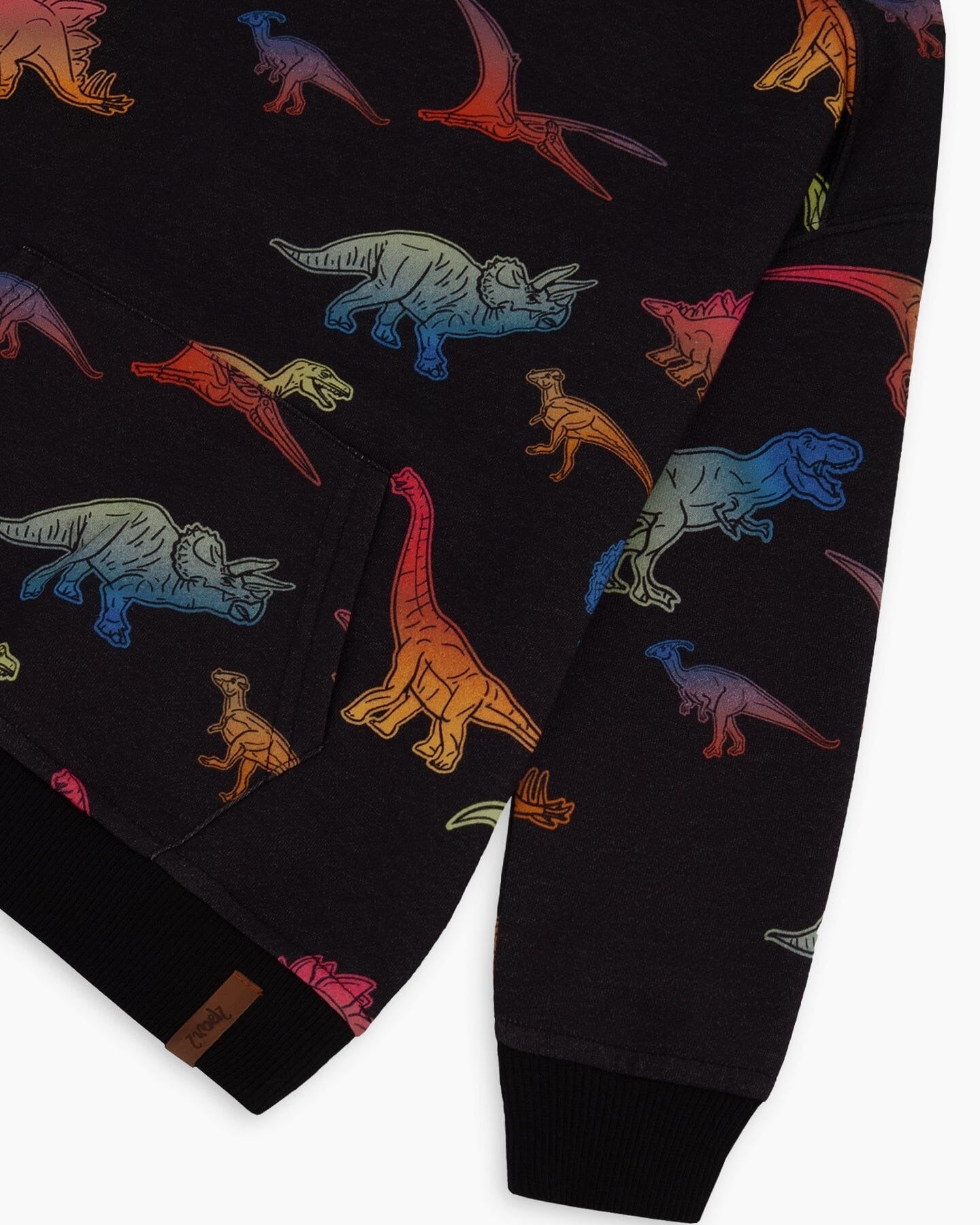 DEUX PAR DEUX PRINTED MULTICOLOR DINOSAUR HOODIE BLACK