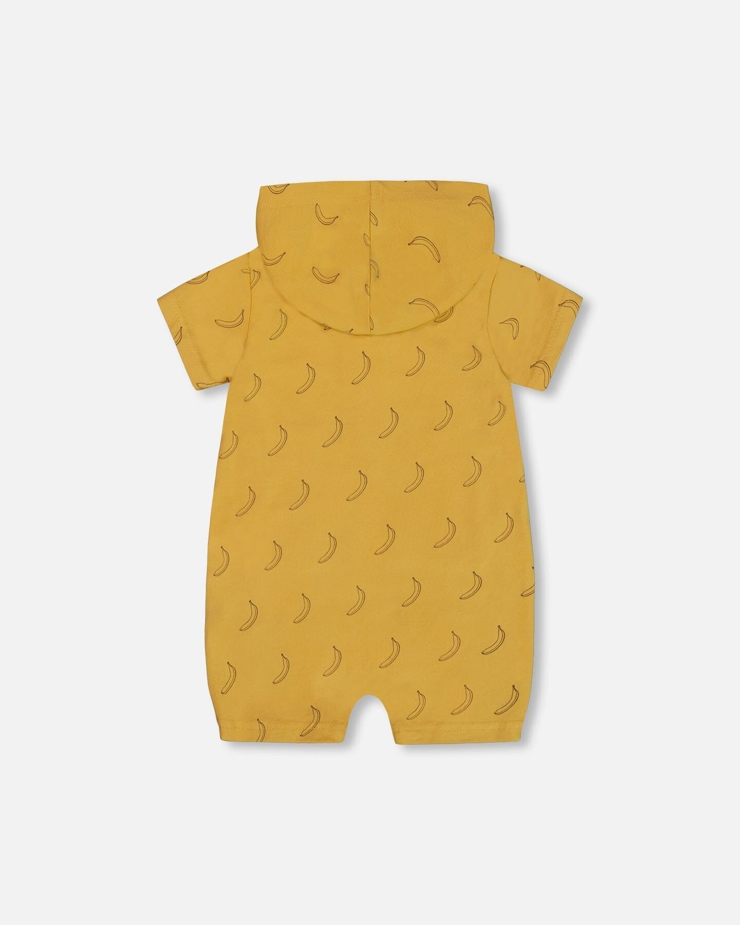 DEUX PAR DEUX PRINTED ORGANIC COTTON HOODED ROMPER YELLOW BANANAS