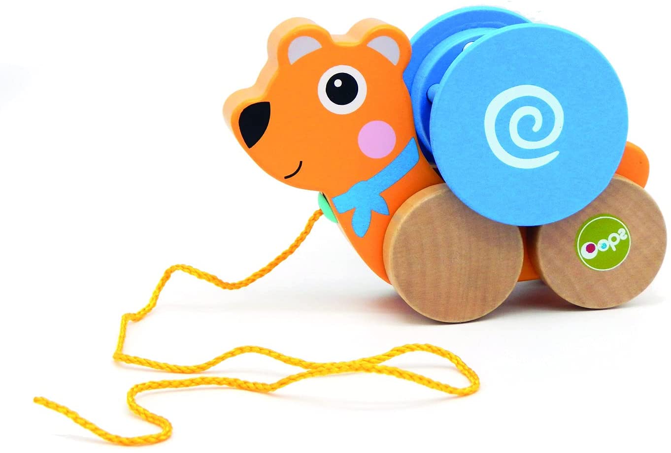 Introduce your toddler to the wonder of wooden toys with their first pull along toy, OOPS® Pull & Fun Bear. Bear design features durable pull string and 4 wooden rolling wheels that encourage mobility. Detchable rattle engages the senses and stimulates auditory development