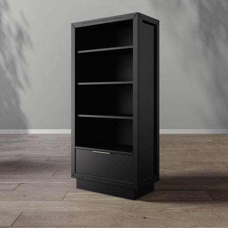 Quadro Bookcase offers the best of both storage worlds. A drawer to hide away toys before the guests arrive and shelf space to store those amazing objects called books. Crafted in Europe with solid hardwood and finished with our signature organic paints this superb piece is dressed in our Greenguard GOLD finishes and accessorized with an Italian tab style champagne gold handle. Hydraulic soft-closing systems on drawers make Quadro a timeless choice of furniture, from nursery to college and beyond. This collection is available in 8 remarkable finishes.
