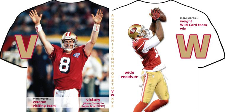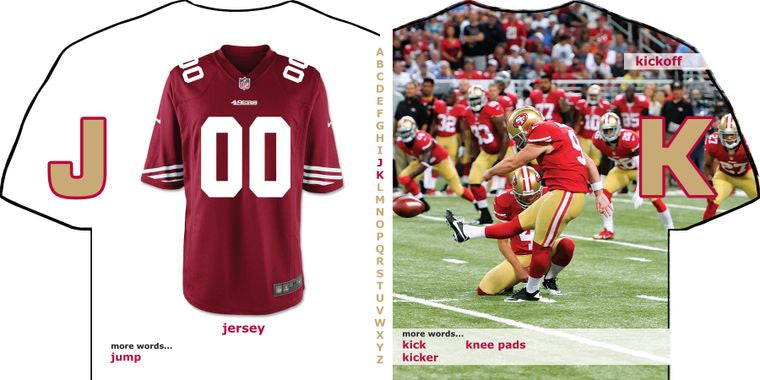 San Francisco 49ers ABC is the ultimate alphabet book for every young 49ers fan! A is for action, F is for football, M is for mascot Sourdough Sam, Q is for quarterback and, of course, V is for victory in Super Bowl XXIX!