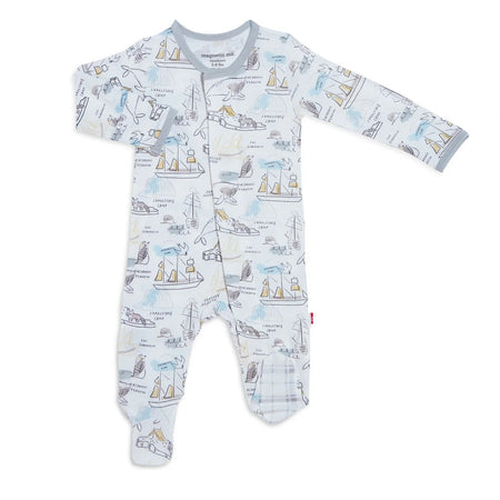 A soft, stylish all-day and all-night wardrobe staple with smart magnetic fasteners that makes changing time painless. With our no over-the-head design, simply open the outfit, insert baby, and BOOM, DONE! - the footie practically closes itself. Machine wash as directed.