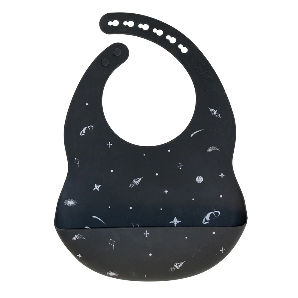 The silibib is made of super soft food-grade silicone offered in a variety of playful colours. Lightweight for a comfortable fit and reusable after each meal!