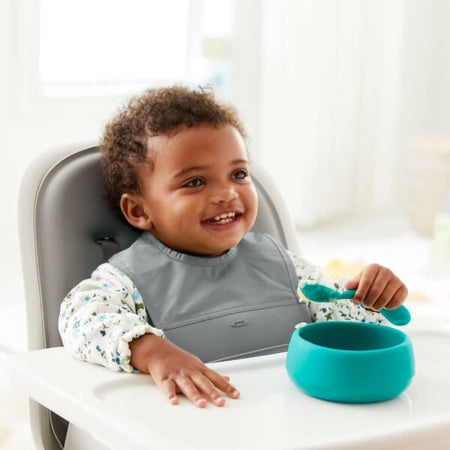 This Silicone Bowl is the perfect first serving dish for new eaters. Made entirely of BPA-free silicone, this Bowl features a weighted base that helps prevent accidental tipping — or purposeful tossing. Tantrum-proof silicone construction stands up to all kinds of banging without chips or cracks. The high walls of the Bowl curve inward to help toddlers get more food onto their spoons as they scrape the sides. This Bowl is designed to fit in little hands, so it's easy for kids to carry cereal or grapes wherever they want to go. Dishwasher and microwave safe.