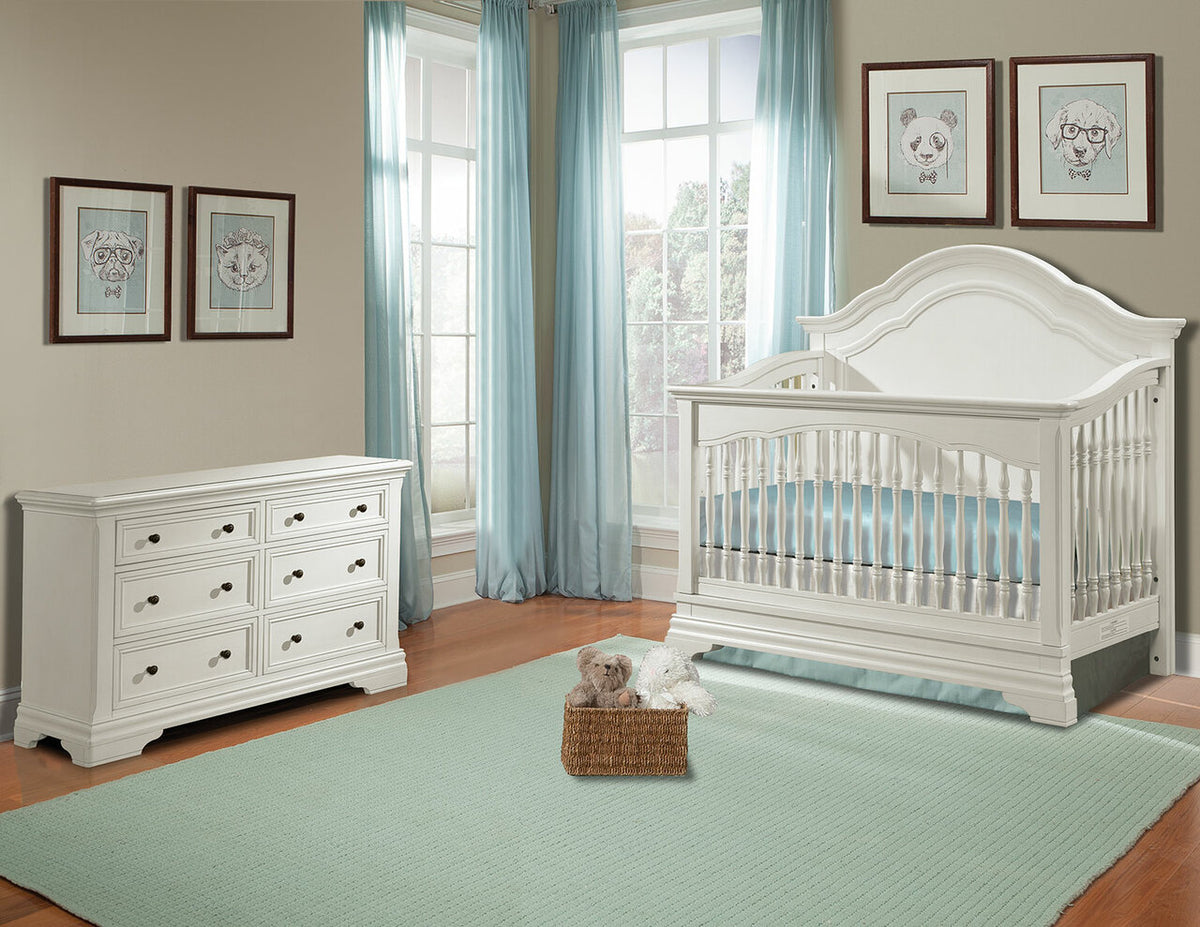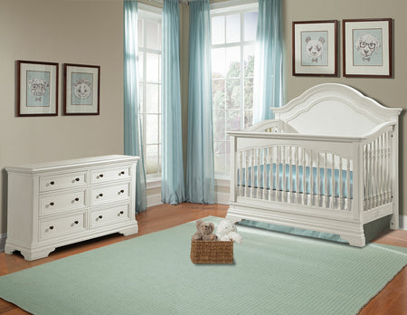 The Stella Baby & Child Athena Convertible Crib and Dresser set includes the coordinating Stella Baby Athena Convertible Crib & Double Dresser in Belgium Cream.