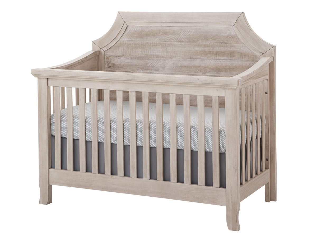 The Stella Baby Remi Clip Convertible Crib in Sugarcoat ( Pagoda style ) will grow with your child as it converts from crib to toddler bed and finally a full size bed ( conversion kits sold separetely ). Purchase one of the coordinating Remi Dressers or Chests to complete your nursery.