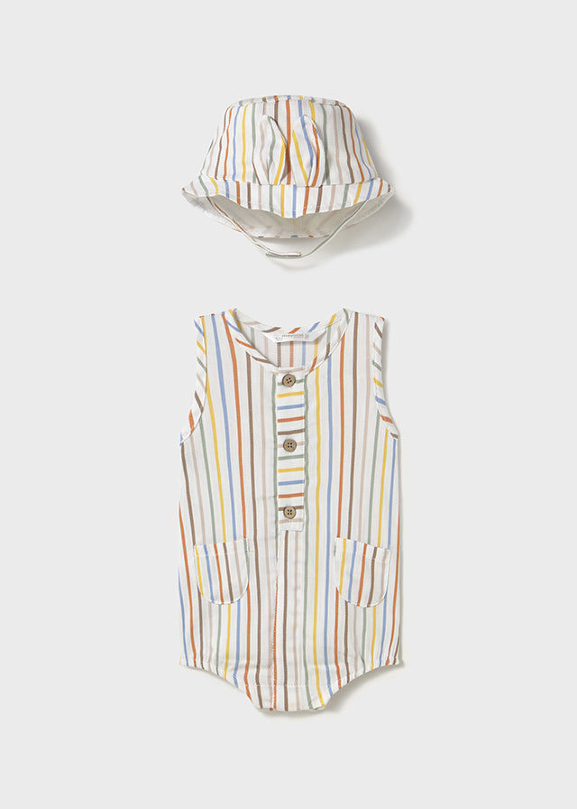 MAYORAL STRIPED NEWBORN ROMPER WITH HAT