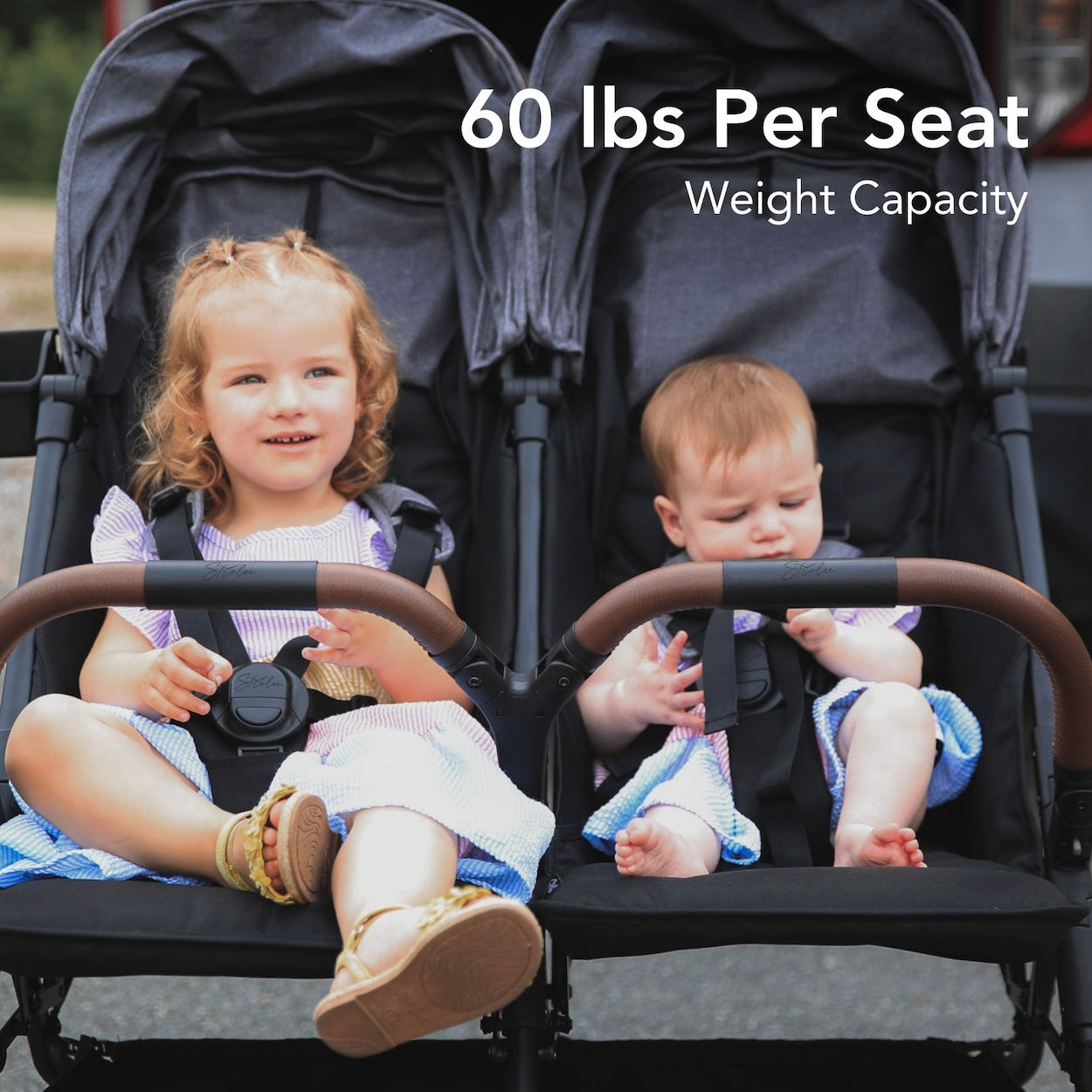 Car Seat Compatible - Compatible with leading car seat brands, you can easily click in an infant car seat while your toddler rides comfortably in the second seat. From newborn and toddler siblings to two growing explorers, Strolee transforms to meet your changing needs, making every transition seamless.