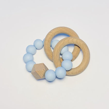 SUGAR + MAPLE SUGAR + MAPLE SILICONE + BEECHWOOD 2 RING TEETHER - BLUE