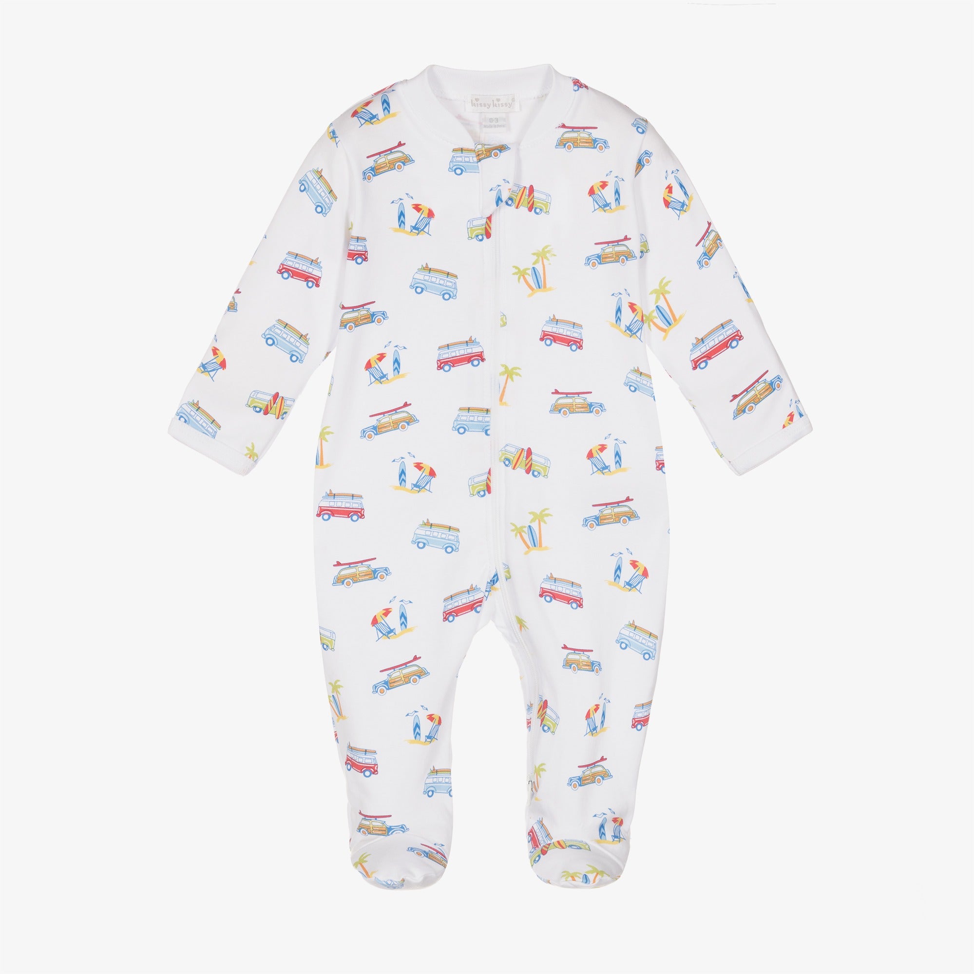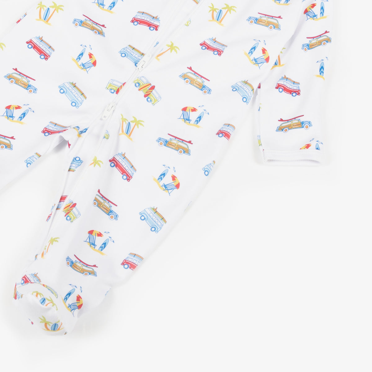 Playfully patterned with a surfing vans print, our cozy zippered footie for your baby is made from the softest Pima cotton for ultimate comfort.