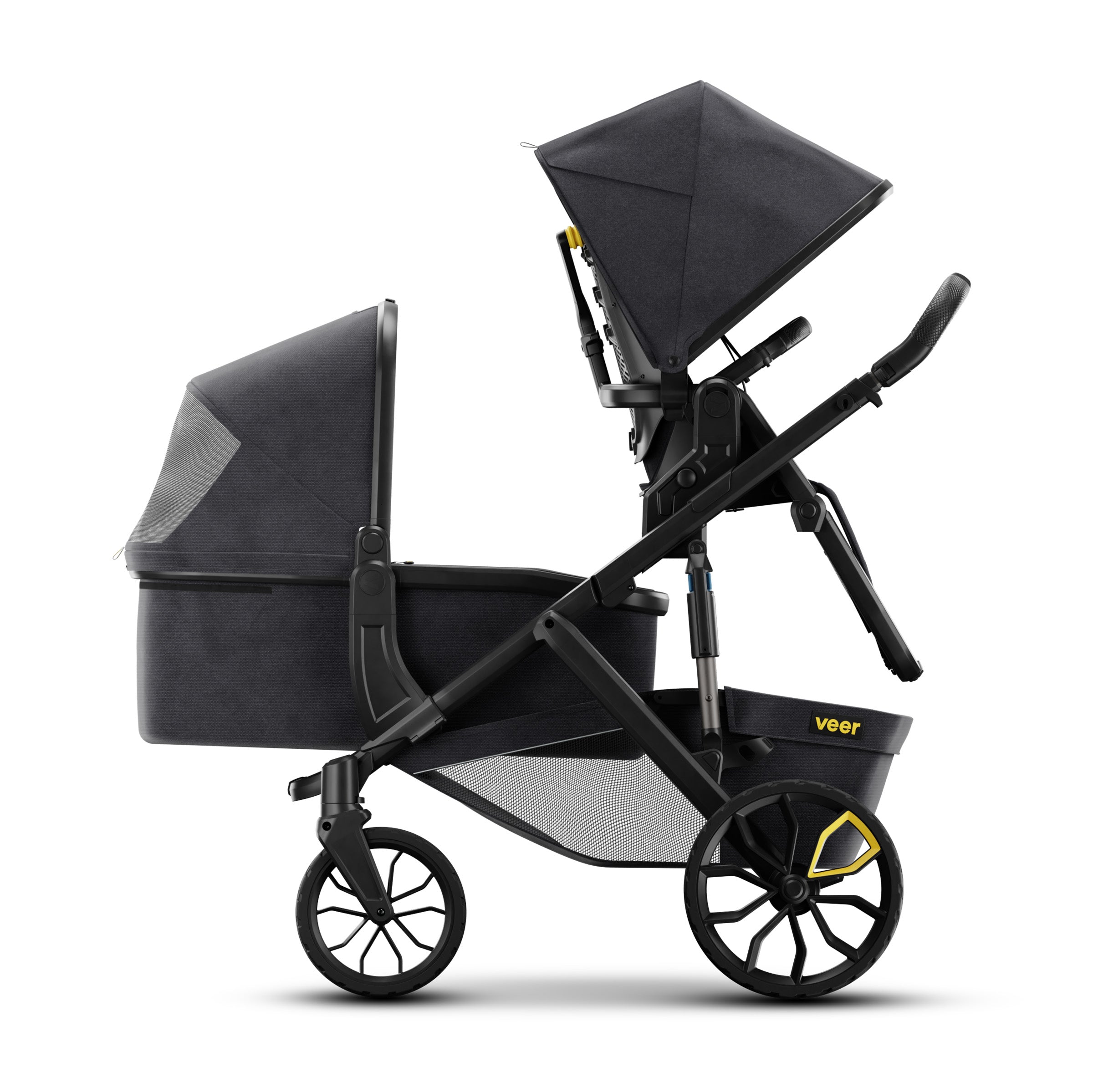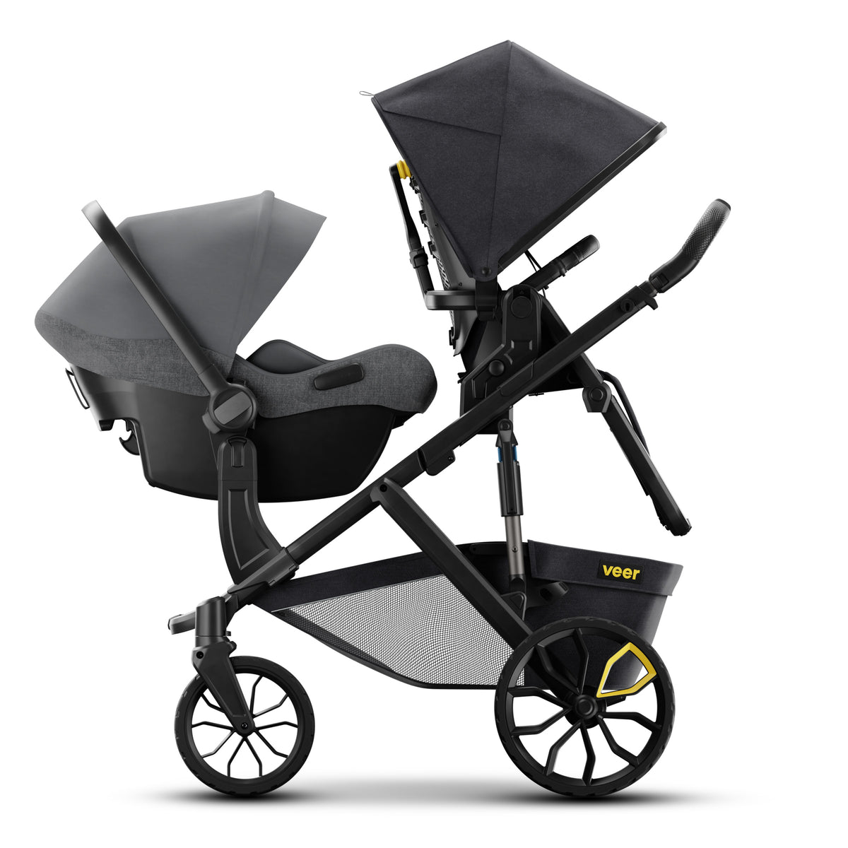The Veer Switchback Second Seat Adapter Kit converts your &Roll Stroller frame into a double stroller. The Veer Switchback Second Seat Adapter kit allows one to easily click on a second Bassinet or Switchback Seat. Use on Switch&Roll Stroller to mount second infant car seat adapter in the rear (upper) position or a Switchback Seat on front (lower) level. Allows the Switchback seat in front (lower) position to be forward or rear facing. Use on &Roll frame to mount second infant car seat adapter or Switchback Seat on lower level