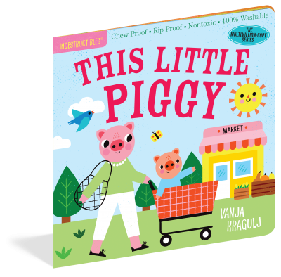This little piggy went to market. Wiggle baby’s big toe! Teach baby the beloved rhyme in a book that’s INDESTRUCTIBLE. Indestructibles is the trusted series for easing little ones into story time. Beloved by babies and their parents, Indestructibles are built for the way babies “read” (i.e., with their hands and mouths) and are: Rip Proof—made of ultra-durable tight-woven material Waterproof—can be chewed on, drooled on, and washed! Emergent Literacy Tool—bright pictures and few or no words encourage dialogic reading Portable—lightweight books can go anywhere, perfect for the diaper bag and for travel Safe for Baby—meets ASTM safety standards