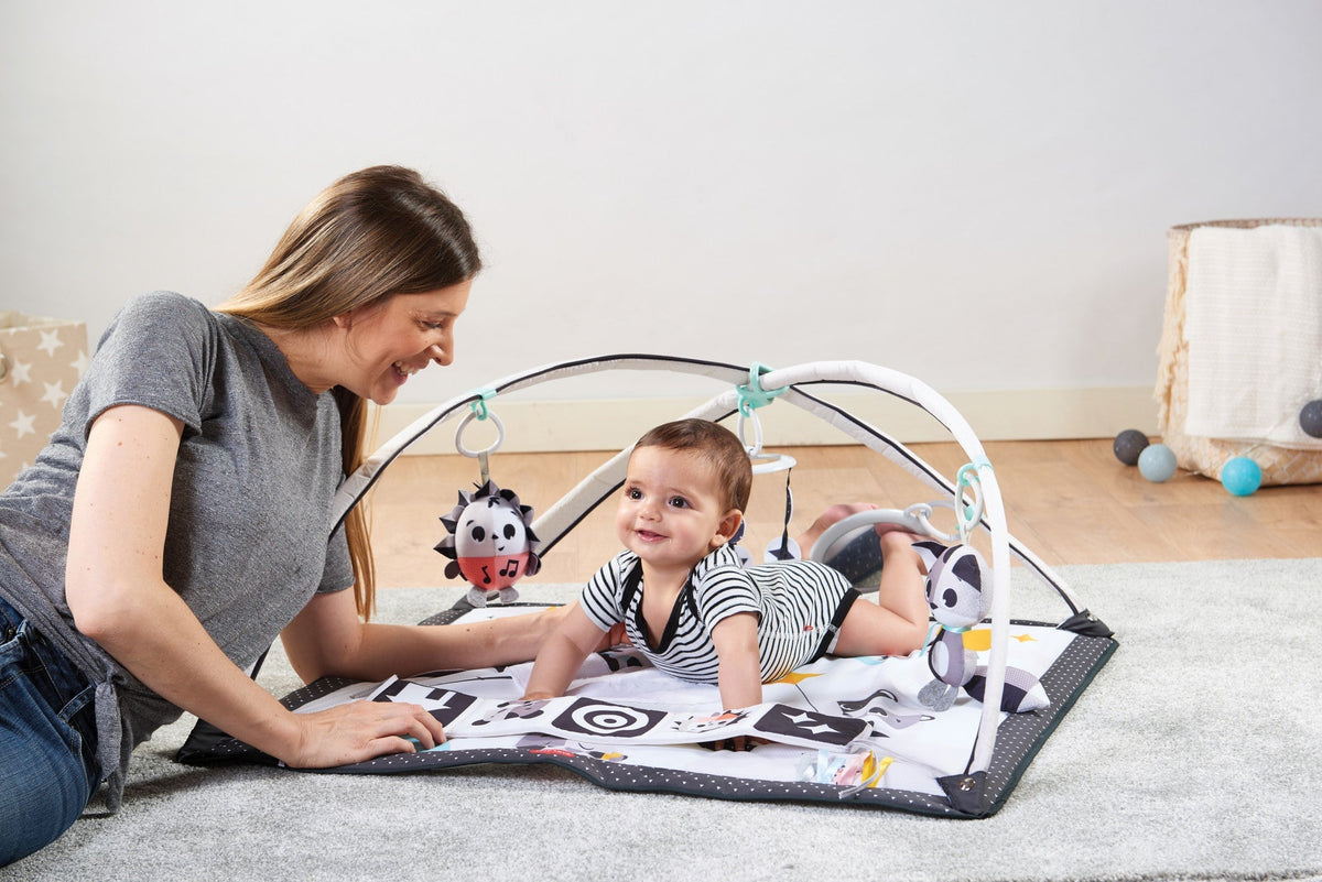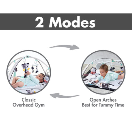 The Magical Tales Black & White Gymini is a stylish activity gym, designed especially to support newborn development. With 18 developmental activities and interactive toys, it encourages baby’s skills as they naturally play. Its contrasting black and white details provide visual stimulation for newborns from day one. The adjustable arches can be easily arranged in a variety of ways, or removed, to enhance your baby’s developmental environment for the ultimate tummy time experience.