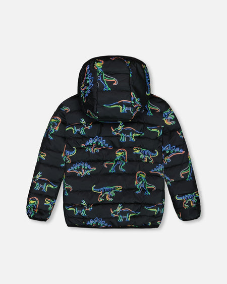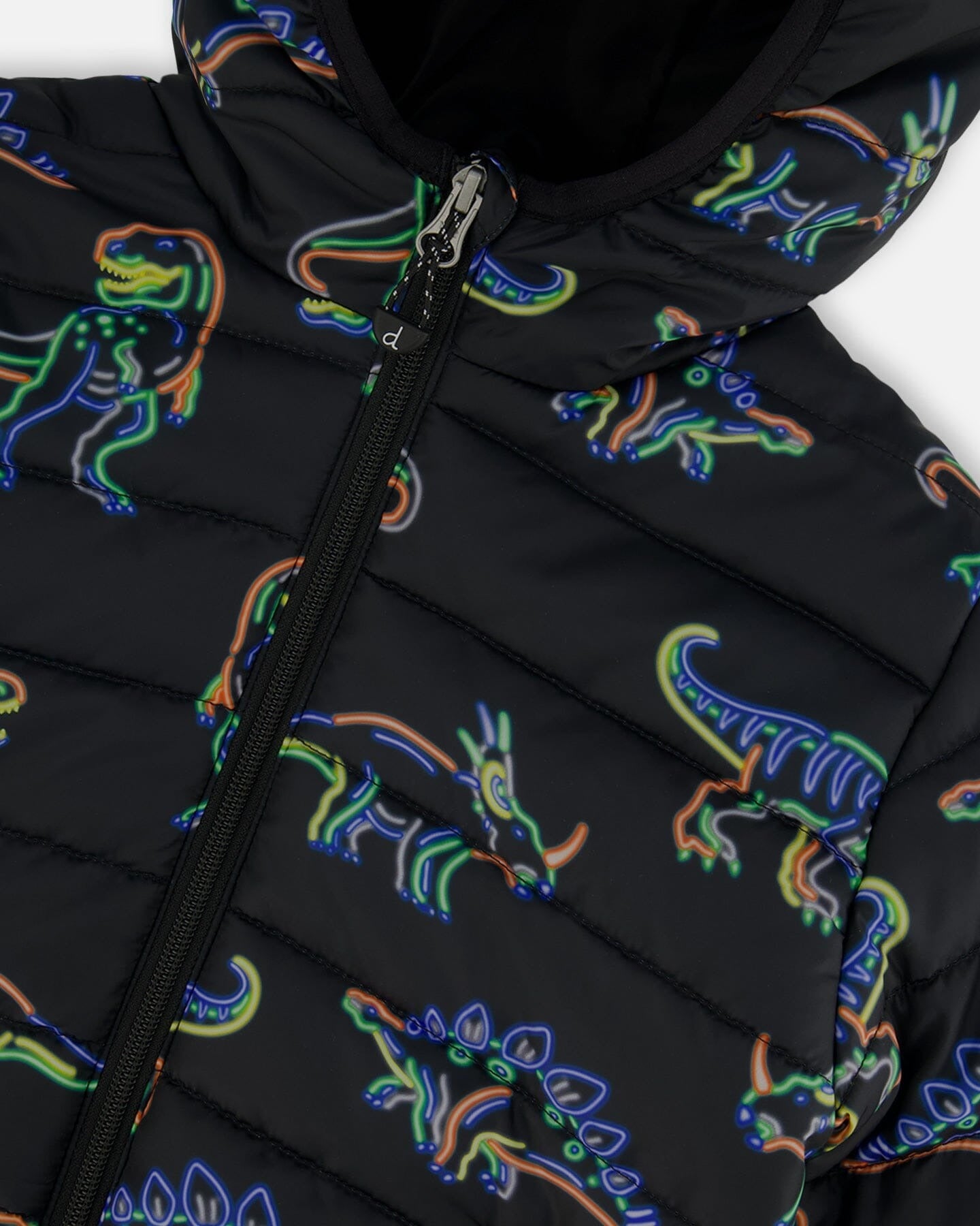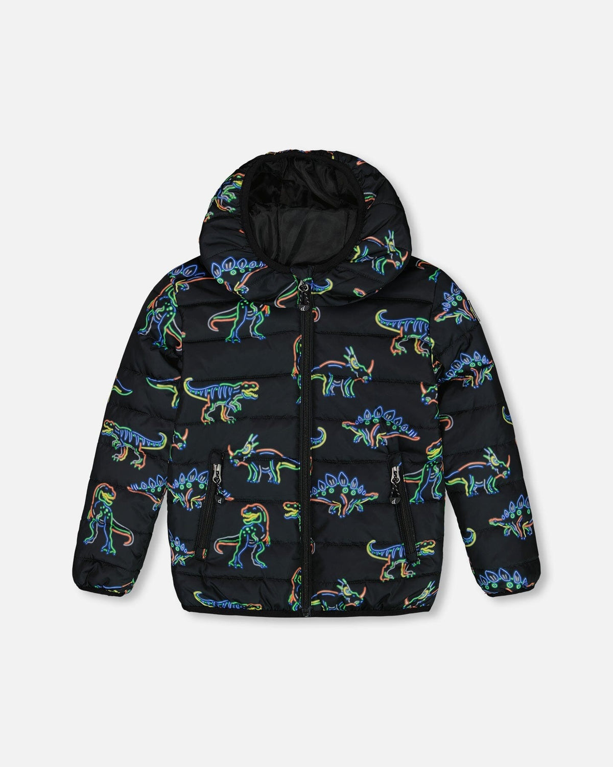 DEUX PAR DEUX TODDLER QUILTED JACKET BLACK PRINTED NEON DINO