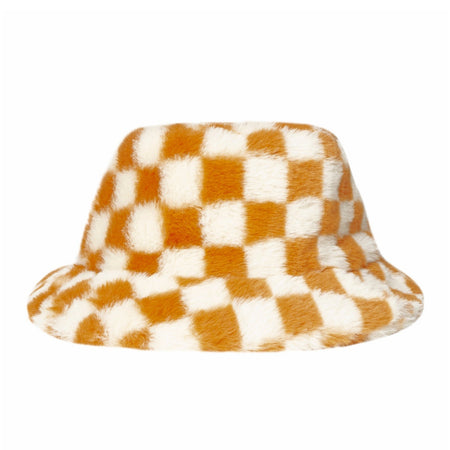 ROCKAHULA TOFFEE CHECK FURRY BUCKET HAT