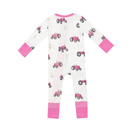 ANGEL DEAR TRACTORS PINK 2 WAY ZIPPER ROMPER