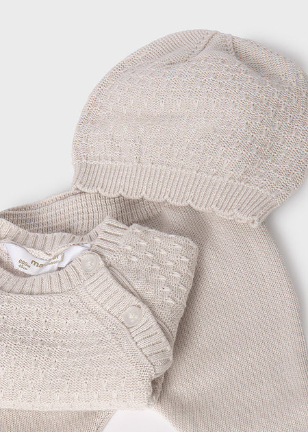 This Mayoral Tricot Baby gift 3 piece knit set in Ice is a perfect set for that newborn baby.