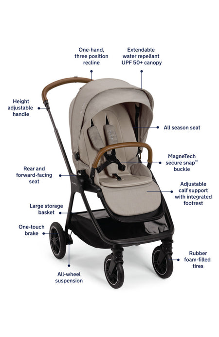 A morning stroll to the park or afternoons in your favorite coffee spot, everyday out and abouts with baby are fuss-free with the TRIV™ next stroller. It’s a natural city dweller that quickly converts to a travel system, packs up easily and stands on its own when folded, becoming the perfect sidekick to your everyday adventures. Engineered for convenience and comfort, the all-wheel suspension, one-touch braking system, and large rear wheels promise easy maneuverability and cushiony smooth city strolls - like riding on air with complete peace of mind. This compact fold stroller is cleverly designed with a seat that faces and folds both ways, no matter what direction baby's facing. The all-season seat keeps your precious cargo snug in winter and converts to breathable mesh in summer, while the rain cover provides extra protection no matter the weather. Every parent needs a trusty travel companion to enjoy those everyday adventures waiting around the corner.