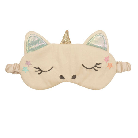This Unicorn mask has a sweet face embroidered, iridescent ears and a sparkling glitter horn! Perfect for catching those much needed zzz's wherever you may be!