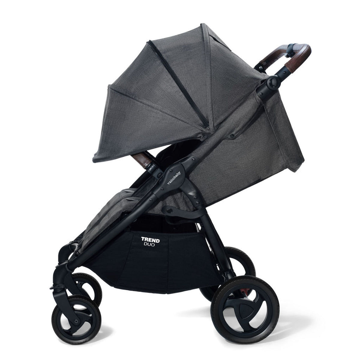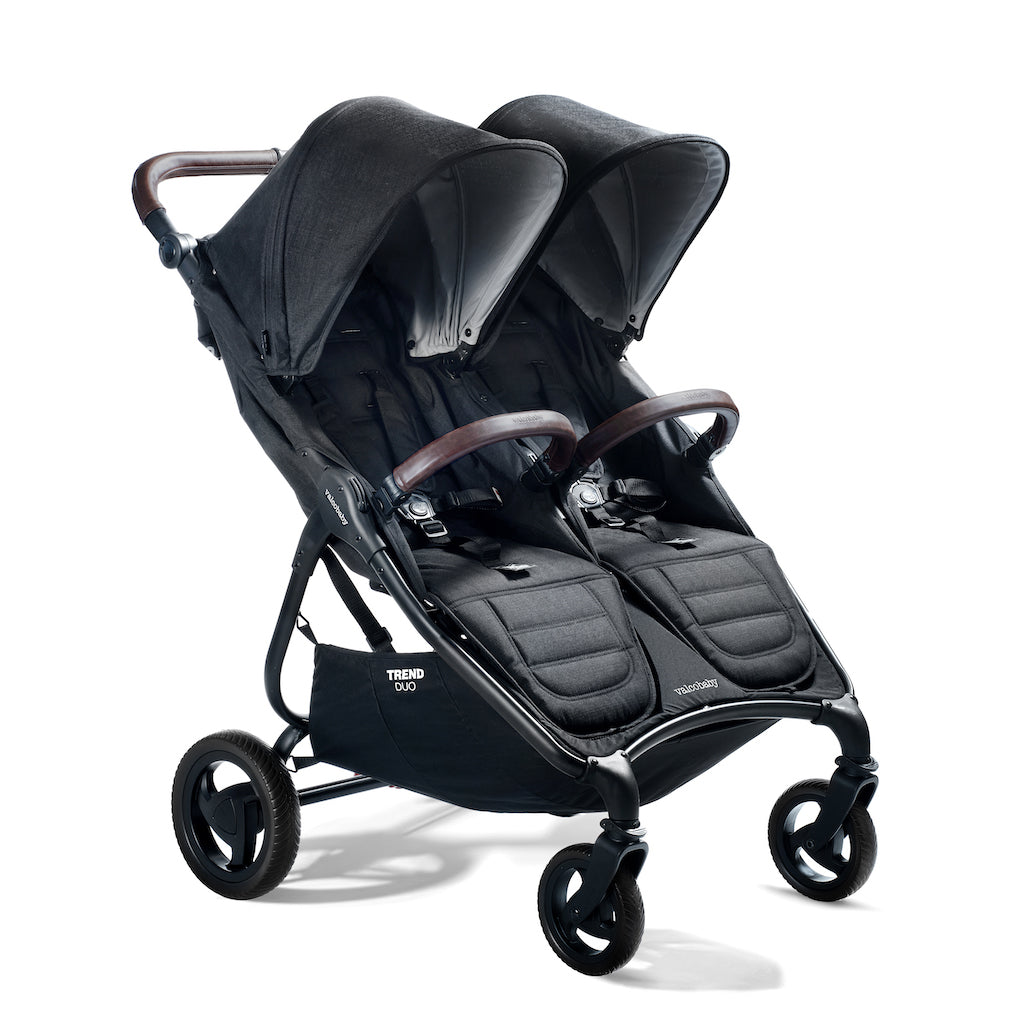 Both stylish and functional, the Valco Baby Trend Duo Lightweight Side by Side Double Stroller features a one-hand easy compact fold, two independent reclining seats and footrests plus extended canopy protection, The Trend Duo is not only a great travel stroller but also ideal for daily errands, walks, family trips and getting around town. An easy compact fold makes it a breeze to take in and out of the car.