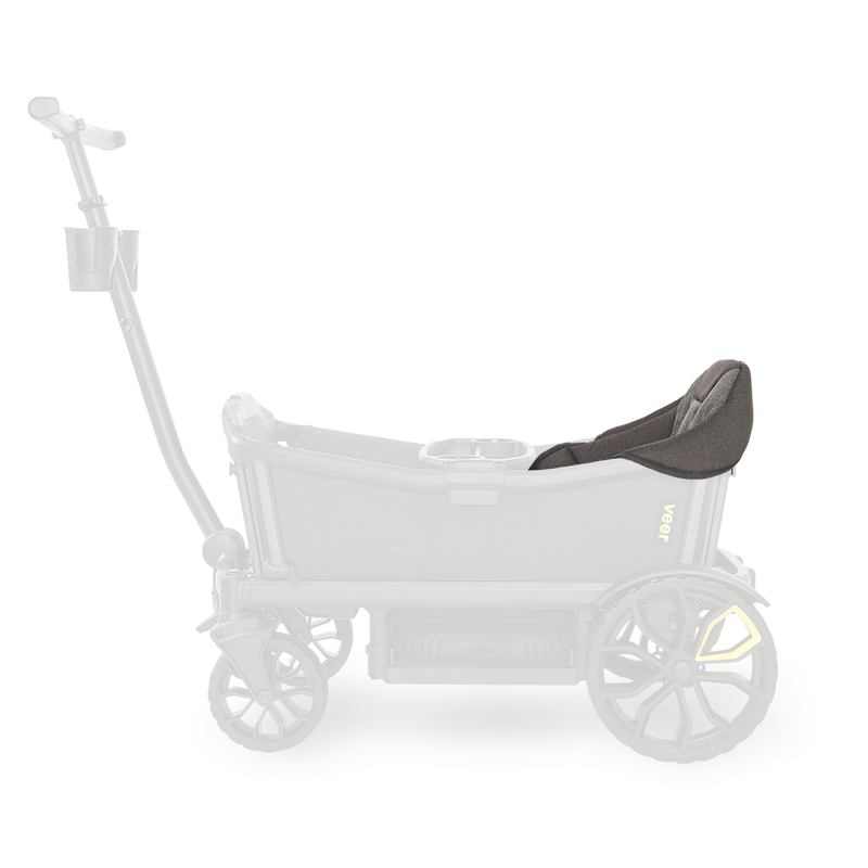 Veer's Comfort Seat for Toddlers easily inserts into the Cruiser's standard seat to provide cushioned comfort and support. It is designed for children from 6 months up to 35 lbs. It includes a 5-point harness for safety. Soft, padded fabric creates an ultra-comfortable seat and head rest. Hidden magnets on the side wings ensure an easy, snug fit with the side walls. Two Comfort Seats can be used simultaneously (one on each seat). Cruiser will fold when using one Toddler Seat. Comfort Seats can also be used with Veer’s Retractable Canopies.