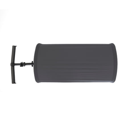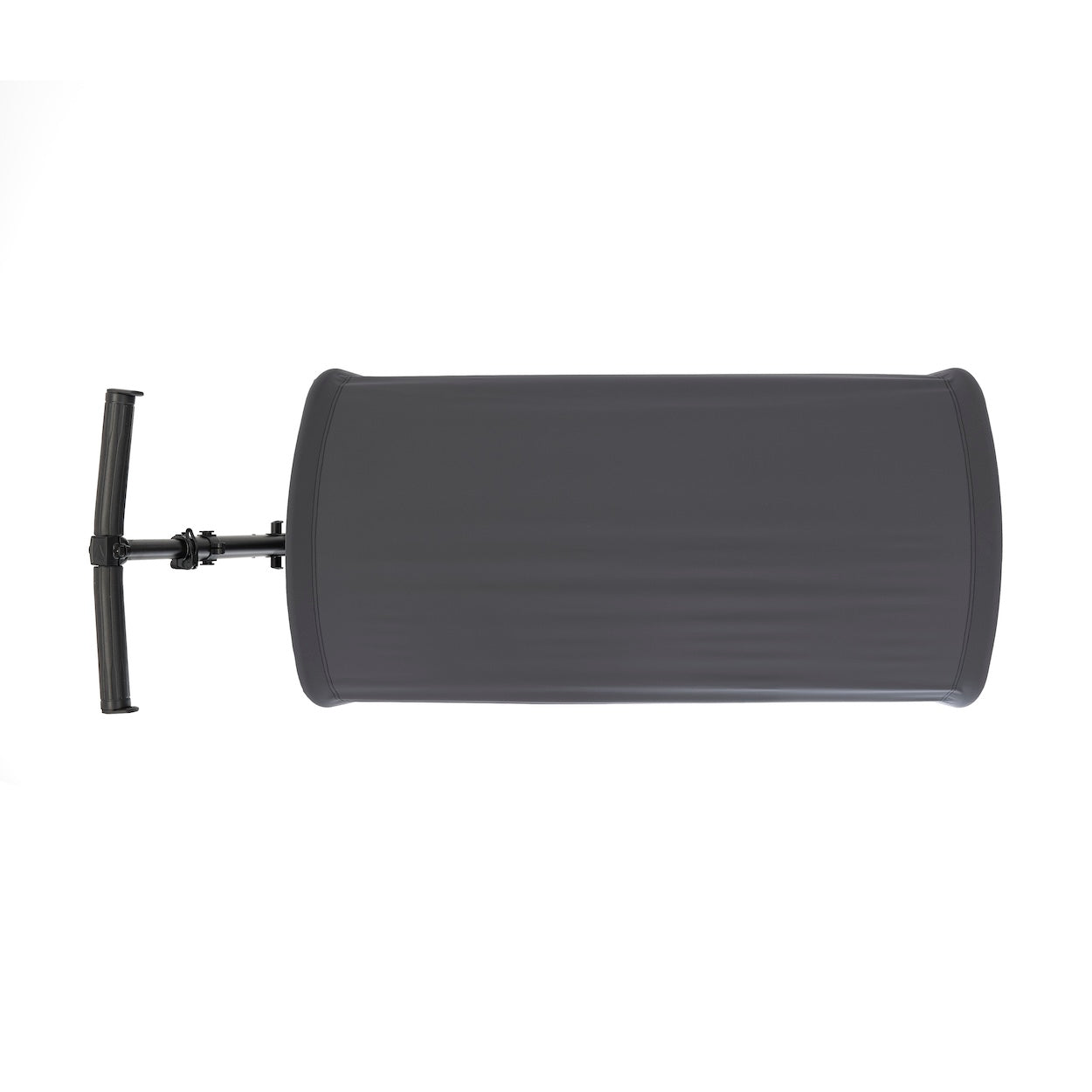 - Springy fabric slides up or down the frame to align with the sun for all-day shade