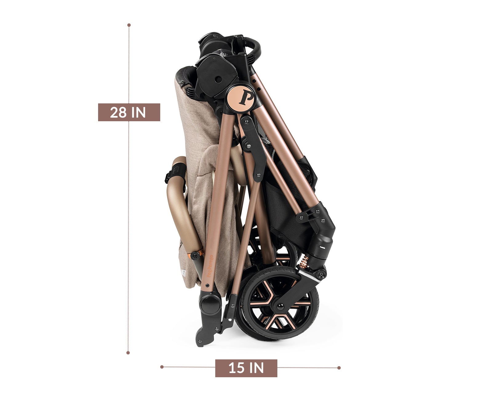 Light and ultra-compact, with a reversible seat. With the Vivace stroller, you can move about freely with style and peace of mind. From birth, reversible seat. It only weighs 20.72 lbs. 20 inches wide, it passes the elevator test, with ease. Top quality wheels ensure agile steering on all terrains.
